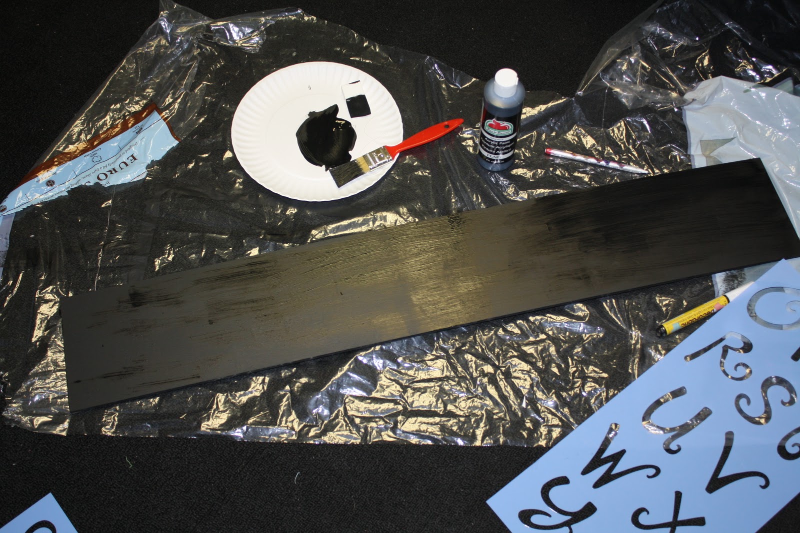 After stenciling I filled in the letters with the white paint pen. I found this was MUCH easier than the paintbrush and white paint I first tried to use!